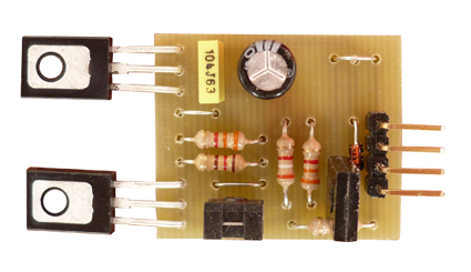 Предлаганата схема на термодатчик се използва за управление на 12 волтов вентилатор, когато е необходимо активно охлаждане на дадена апаратура. При достигане на избрания праг на сработване избран посредством тример-потенциометъра, ключовия транзистор BD140 постепенно се отпушва до достигане на цялото изходно напрежение, което е 11,3 волта. Двата транзистора BD139 служат за температурни датчици. Те трябва да бъдат монтирани на съответния радиатор, на който ще се следи температурата, посредством изолационни подложки и термо паста. Настройката на схемата става след като всичко е монтирано.Подава се захранващо напрежение и се завърта тримера в посока, така че вентилатора да не работи. След като радиатора, който ще бъде принудително обдухван се загрее до необходимата температура, тример-потенциометъра се завърта бавно в обратната посока до включването на свързания към схемата вентилатор. На платката на модула е предвидено място за стабилизатор 7812 в случай че няма готово стабилизирано 12 волтово захранване. |